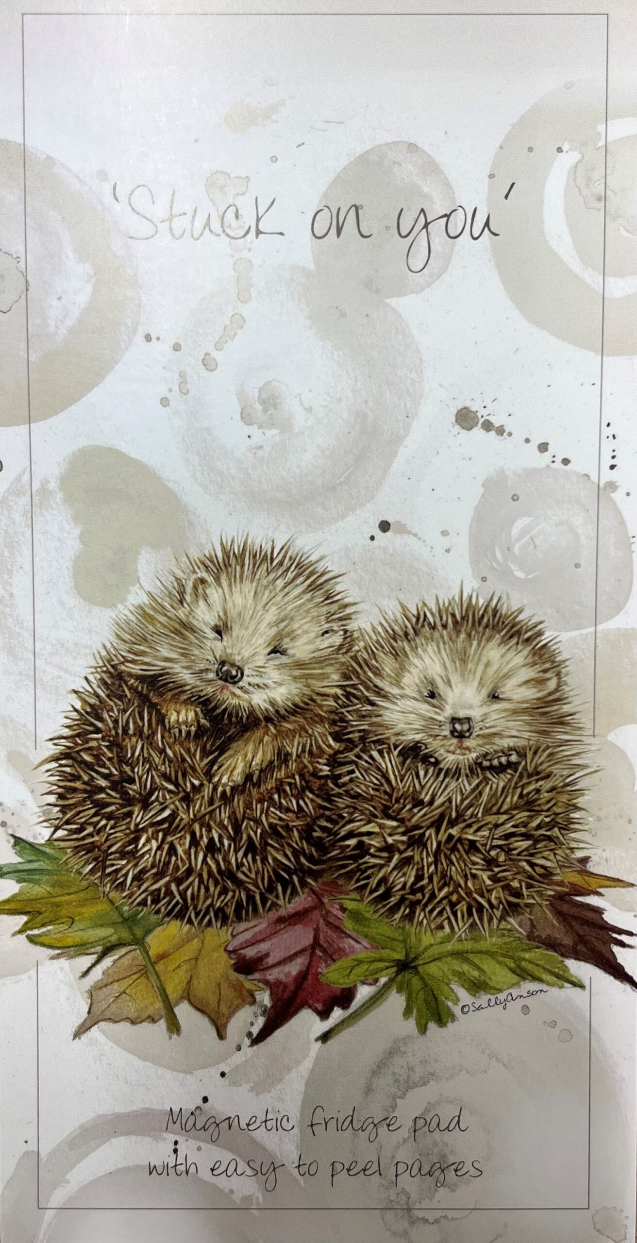 This magnetic notepad is a useful addition to the fridge or desk. The cute drawing of 2 hedgehogs by Sally Anson on the front is copied on each of the 50 lined pages.